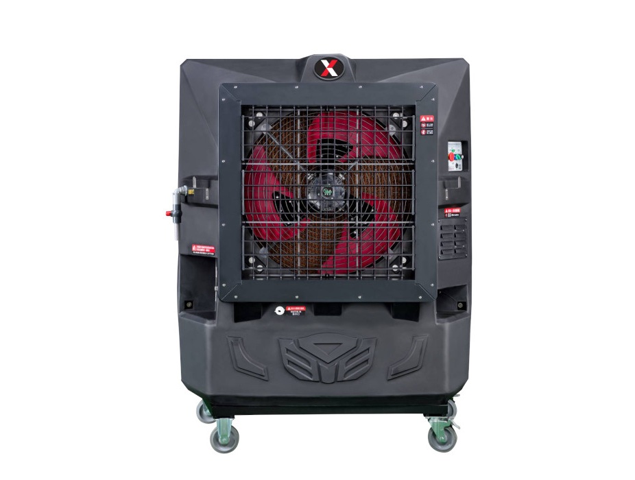 El REX25000 es un enfriador evaporativo industrial de alto rendimiento, pensado para espacios que requieren una enorme capacidad de ventilación y enfriamiento natural. Gracias a su flujo de aire masivo, es capaz de refrescar áreas muy amplias sin necesidad de instalación ni conductos, solo con la potencia de la evaporación del agua.