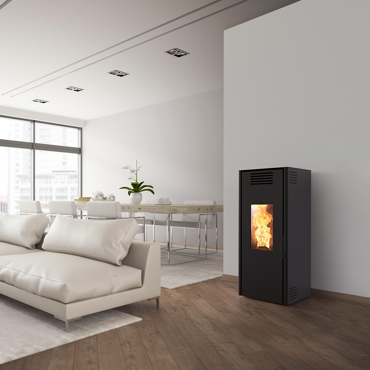 Los equipos de pellet de Caminetti Montegrappa destacan por su eficiencia y durabilidad. Cada estufa o chimenea es fabricada con materiales de primera calidad, garantizando un funcionamiento seguro y continuo durante años. Su tecnología avanzada permite un control preciso de la temperatura, optimizando el consumo de combustible y reduciendo emisiones, lo que los convierte en una opción respetuosa con el medio ambiente.