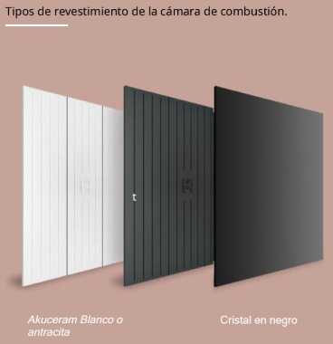 Disponible con diferentes acabados interiores: Akuceram (color blanco o grafito) y cristal negro, y 6 configuraciones de cristal (frontal, esquina izquierda, esquina derecha, 3 caras tipo C, 3 caras tipo U y 2 caras.