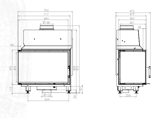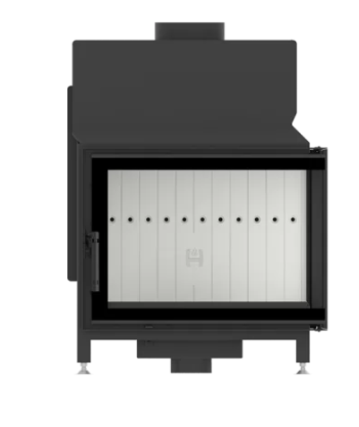 Insertable. Puerta SIMPLE. Sistema de cristal limpio. Gran visión de cristal vitroceramico resistente al calor. Puerta de acero. Dos cortinas de aire superior e inferior. Amplio contenedor extraíble de cenizas. Patas regulables 4 cm de rango. Deflectores cerámicos. Sistema de postcombustión. Amplia cámara de combustión. Entrada de aire exterior.
