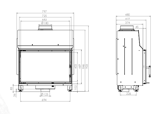 El cristal cerámico resistente al calor permite disfrutar del fuego con total seguridad, mientras que su diseño minimalista encaja perfectamente en ambientes rústicos o contemporáneos. Además, su cámara de combustión revestida con Acumotte (material refractario de alta eficiencia) asegura una mejor retención del calor y una combustión más limpia.