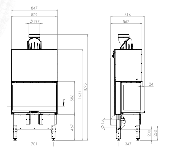 Serie Trinity: Chimeneas de tres caras con cristal panorámico, elegantes y con gran visión del fuego.