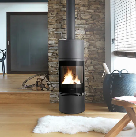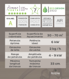 H 1200 x W 450 x D 450 mm. Diametro del tubo ext. 150 mm. Salida de humos : Superior. (Tablero comparativo : p111) Design : B. Dequet.