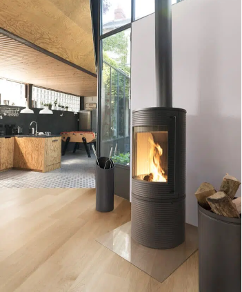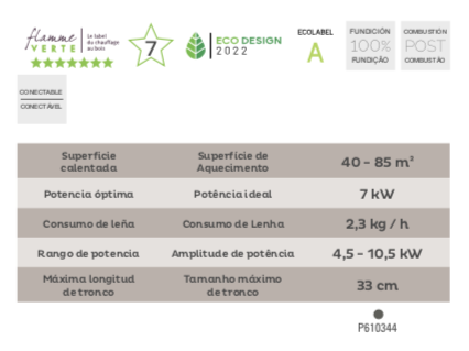 H 1050 x W 450 x D 450 mm. Diametro del tubo ext. 150 mm. Salida de humos : Superior. (Tablero comparativo : p111) Design : B. Dequet.