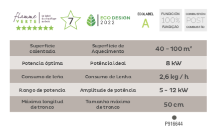 H 744 x W 644 x D 547 mm. Diametro del tubo ext. 150 mm. Salida de humos : Superior o trasera. (Tablero comparativo : p111)