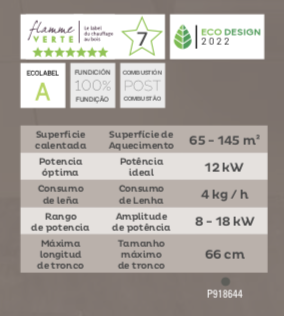 H 801 x W 820 x D 471 mm. Diametro del tubo ext. 150 mm. Salida de humos : Superior o trasera. (Tablero comparativo : p111) Design : B. Dequet.