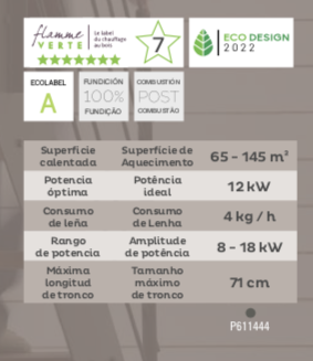 H 899 x W 1051 x D 480 mm. Diametro del tubo ext. 180 mm. Salida de humos : Superior. (Tablero comparativo : p111) Design : B. Dequet.