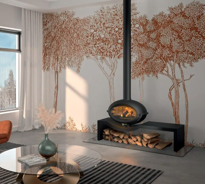 He aquí una interpretación original del espectáculo de fuego brillantemente encarnado por este nuevo dúo. El banco de acero con un aspecto elegante sigue las formas de la extravagante estufa de leña para crear el espectáculo en su sala de estar.