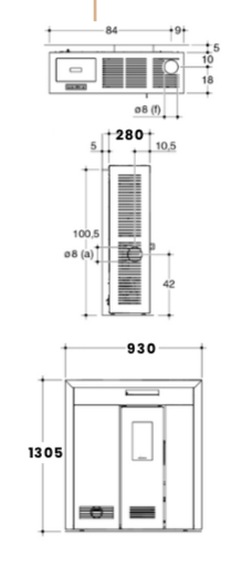 Dimensiones cuerpo ventilado por aire caliente de leña+tapa: L48 x P51 x H109cm