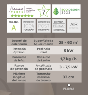 H 880 x W 500 x D 374 mm. Diametro del tubo ext. 150 mm. Salida de humos : Superior. (Tablero comparativo : p113)