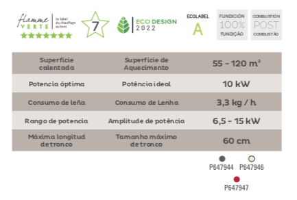 H 755 x W 922 x D 442,5 mm. Diametro del tubo ext. 150 mm. Salida de humos : Superior. (Tablero comparativo : p114)