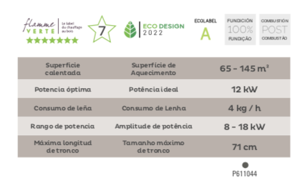 H 846 x W 1051 x D 431 mm. Diametro del tubo ext. 180 mm. Salida de humos : Superior. (Tablero comparativo : p114) Design : B. Dequet.