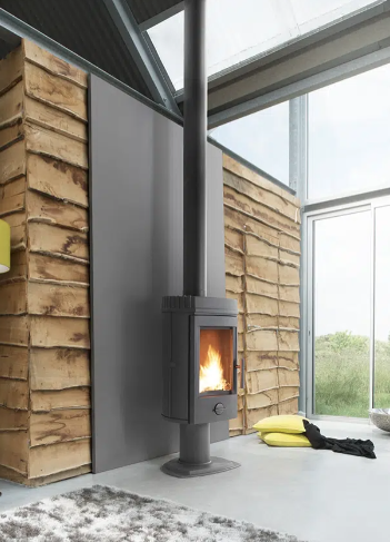 Esta estufa de hierro fundido salta con entusiasmo hacia un mundo de confort y rendimiento energético.