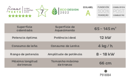 H 788 x W 820 x D 460 mm. Diametro del tubo ext. 150 mm. Salida de humos : Superior. (Tablero comparativo : p115) Design : B. Dequet