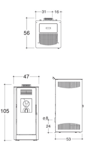 Dimensiones cuerpo ventilado por aire caliente de leña+tapa: L48 x P51 x H109cm
