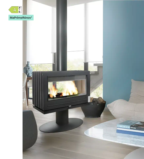 Con sus 2 lados acristalados, la estufa Nelson le da un carácter único a su hogar. Las dulces tardes se anuncian, a cada lado de la estufa, al ritmo del crepitar del fuego y el espectáculo de las llamas, que nunca te querrás perder .