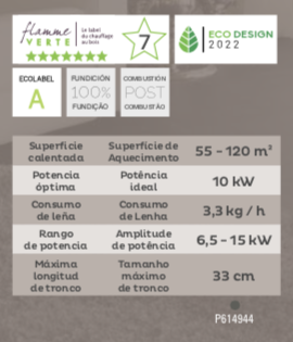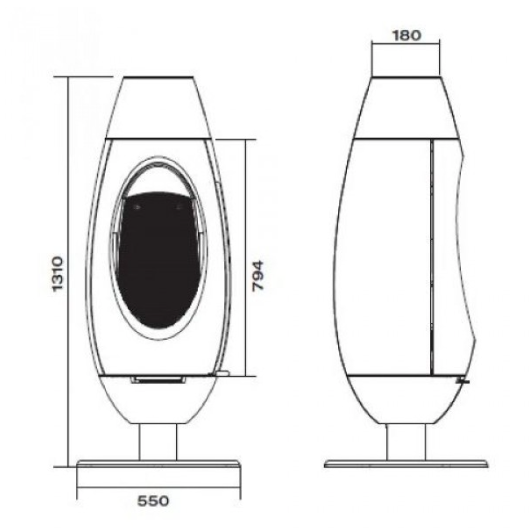 H 1310 x W 550 x D 550 mm. Diametro del tubo ext. 180 mm. Salida de humos : Superior.