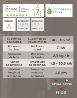 H 722 x W 560 x D 462,5 mm. Diametro del tubo ext. 150 mm. Salida de humos : Superior. (Tablero comparativo : p118)