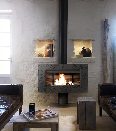 Deja evadir tus sentidos con Symphonia. La danza hipnotizante de las llamas se proyecta sobre la decoración de las puertas de la estufa de leña. Las dulces tardes se anuncian al ritmo del crepitar del fuego. Una silueta auténtica que también certifica un buen rendimiento.