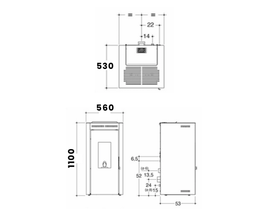 Dimensiones cuerpo ventilado por aire caliente de leña+tapa: L48 x P51 x H109cm