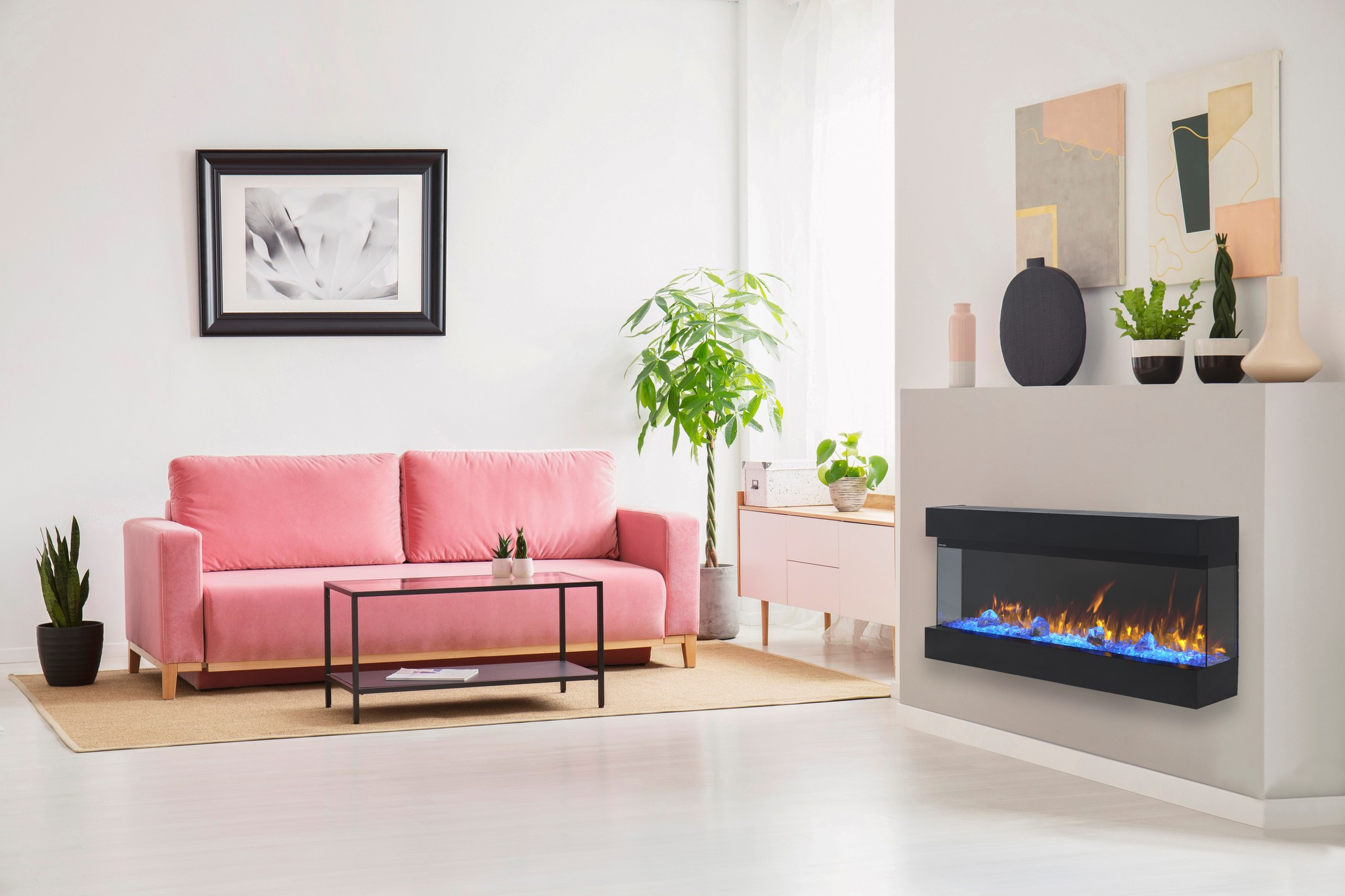 Chimeneas eléctricas de sobre pared, ideales para un montaje sencillo y elegante.