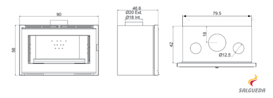 Insertable de leña de Hierro fundido y Acero. Rendimiento mejorado, diseño elegante y precio asequible. Incluye ventiladores con 2 velocidades. Con salidas aire canalizables. Marco opcional. Salida de humos superior.