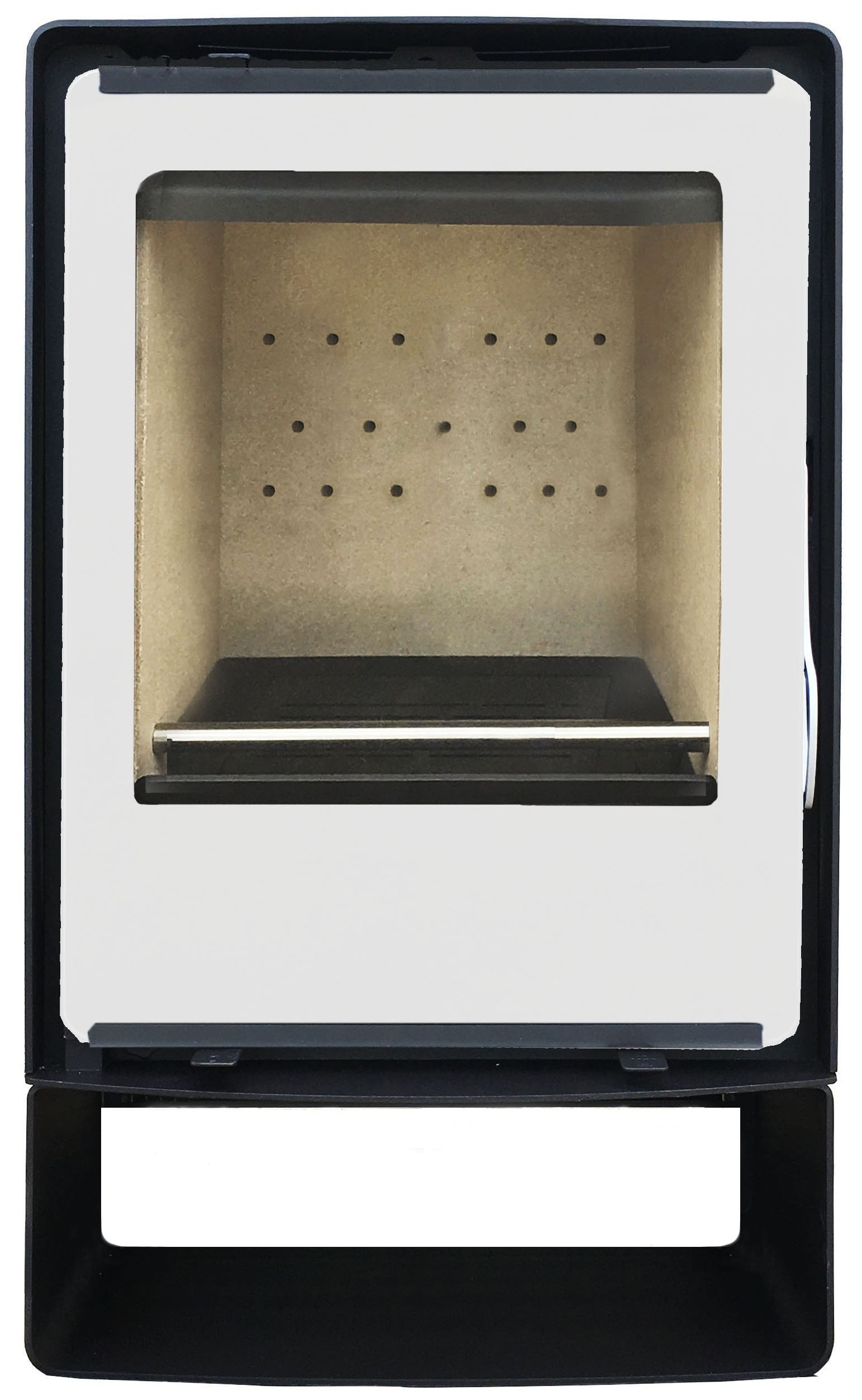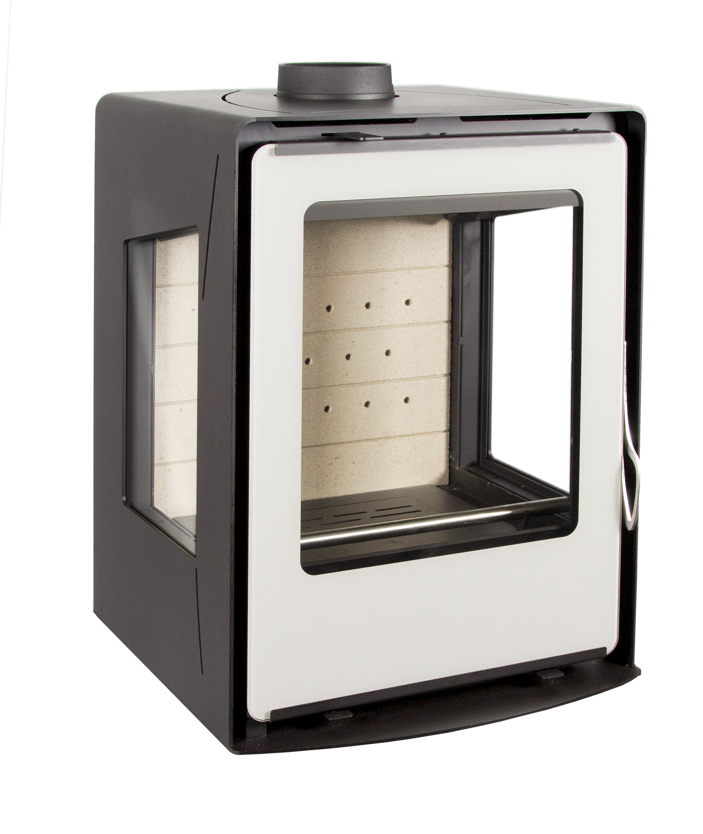 Estufa de leña de Hierro fundido, Acero y Vermiculita. Rendimiento mejorado, diseño elegante y precio asequible. Incluye ventiladores con 2 velocidades. Con salidas aire canalizables. Marco opcional. Salida de humos superior o trasera.