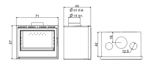 Insertable de leña de Hierro fundido y Acero. Rendimiento mejorado, diseño elegante y precio asequible. Incluye ventiladores con 2 velocidades. Con salidas aire canalizables. Marco opcional. Salida de humos superior.