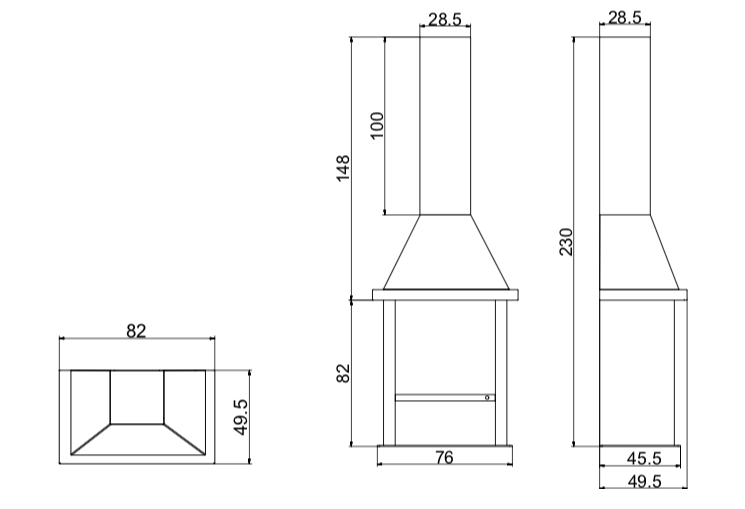 Chimenea metálica, estilo estufa de leña , hecha de Hierro fundido y Acero. Rendimiento mejorado, diseño elegante y precio asequible. Opcional ventiladores con 2 velocidades. Salida de humos superior.