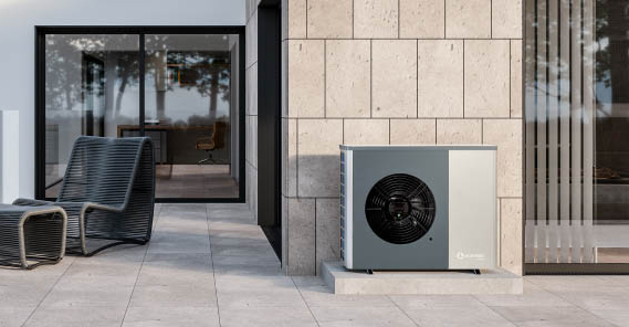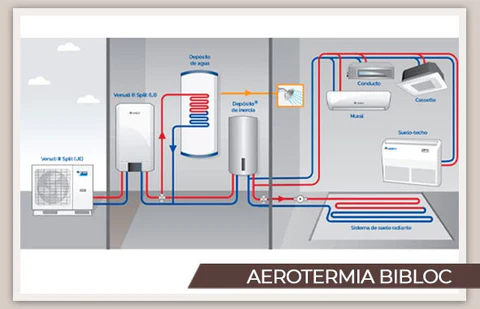 Cuenta con una unidad exterior de mayor tamaño. No requiere instalar circuito frigorífico, tan solo hay que conectar los tubos de agua de entrada y de salida a los depósitos de ACS y sistemas de climatización; radiadores o suelo radiante.
